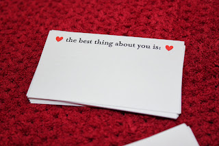 Small notecards that read "My favorite thing about you is" and "the best thing about you is".
