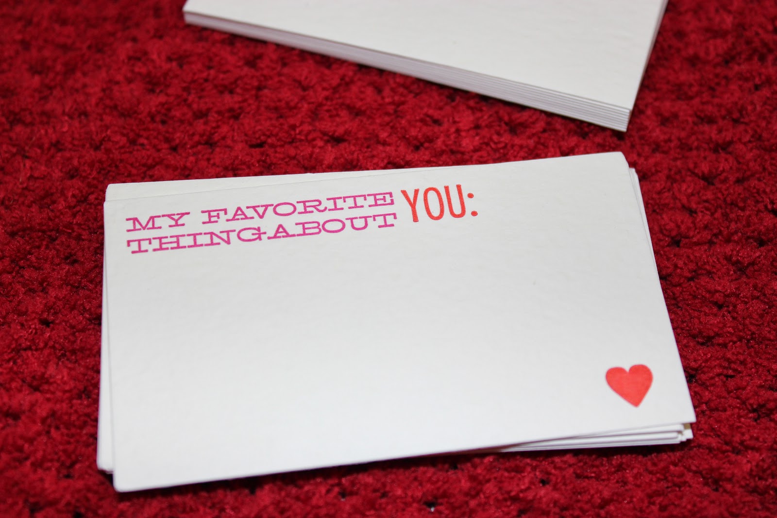 Small notecards that read "My favorite thing about you is" and "the best thing about you is".