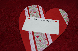 And I went to town! Decorating each heart with ribbon to reflect the person that I was sending it to (remember - designing the gift for the receiver).. I then attached my card and wrote one to two favorite things about the person I am sending it to.