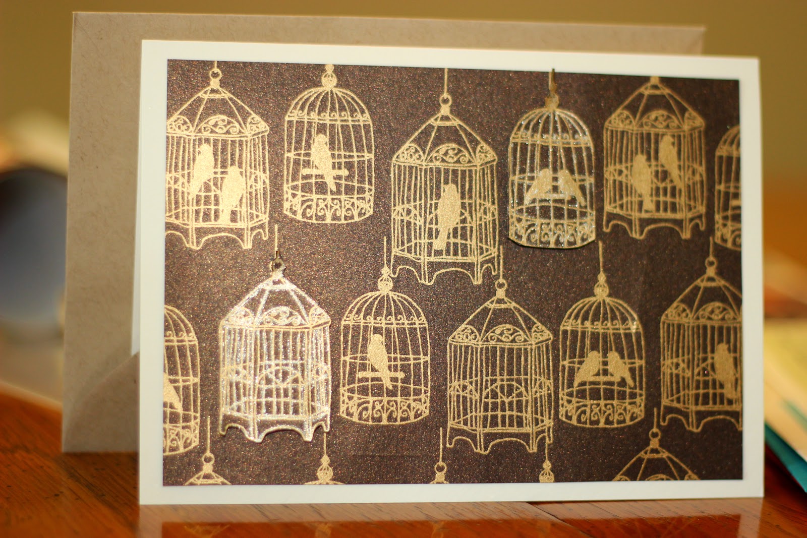 Sticky foam squares do wonders - on this card, I raised two of the bird cases and made them sparkly - just fun!