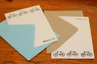 I needed to send some Thank You's this week and decided to try my hand at making my own. Love how these turned out - all you need are flat cards, a bike stamp and a "thank you" stamp. Super simple!